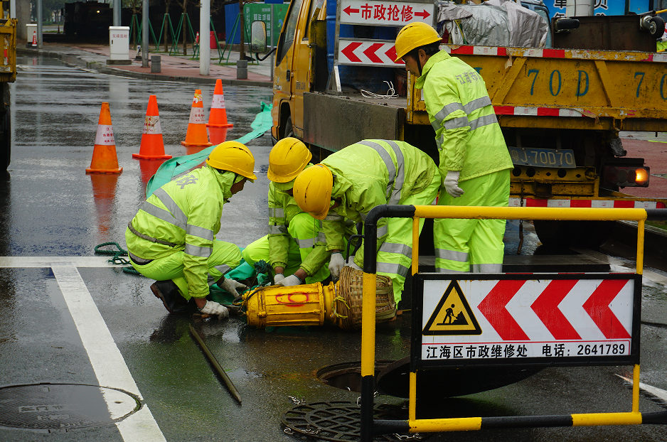 市城管部门制定了排水防涝联动处置预案,组建专业应急队伍,充分储备应急物资,实行24小时值班值守,定期调度信息,构建起及时研判、上下联动、快速处置的应急体系。早强降雨来临前全面清疏排水管网和雨水口,检查确保排水泵站正常运行。强降雨期间,在每个城市易涝点和低洼地段,都安排环卫保洁员和市政设施养护员现场驻守,确保杂物及时清理和排水顺畅。