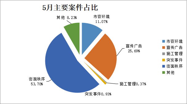 5月份派遣至各县(市、区)城市管理综合执法局办理的案件共14367宗。截至5月31日,已办结14344宗,未办结23宗,办结率99.84%。
