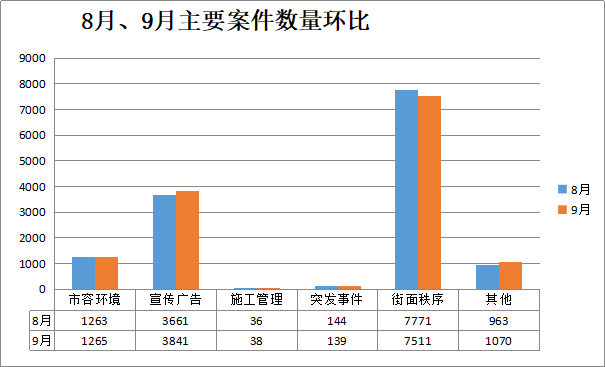 9月份派遣至各县(市、区)城市管理综合执法局办理的案件共13849宗。截至9月30日,已办结13846宗,未办结3宗,办结率99.98%。