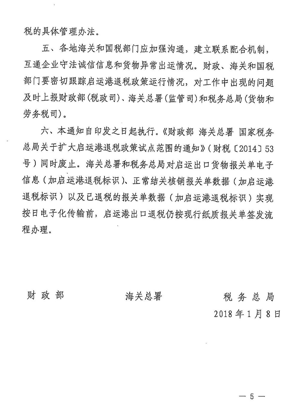 财政部 海关总署 税务总局关于完善启运港退税政策的通知