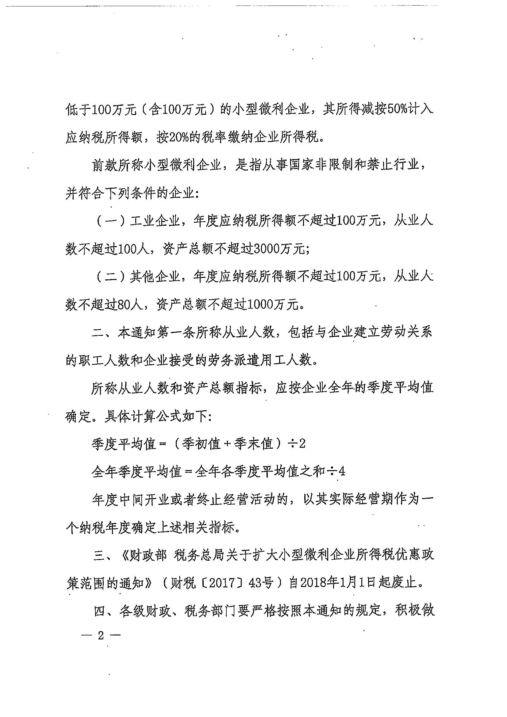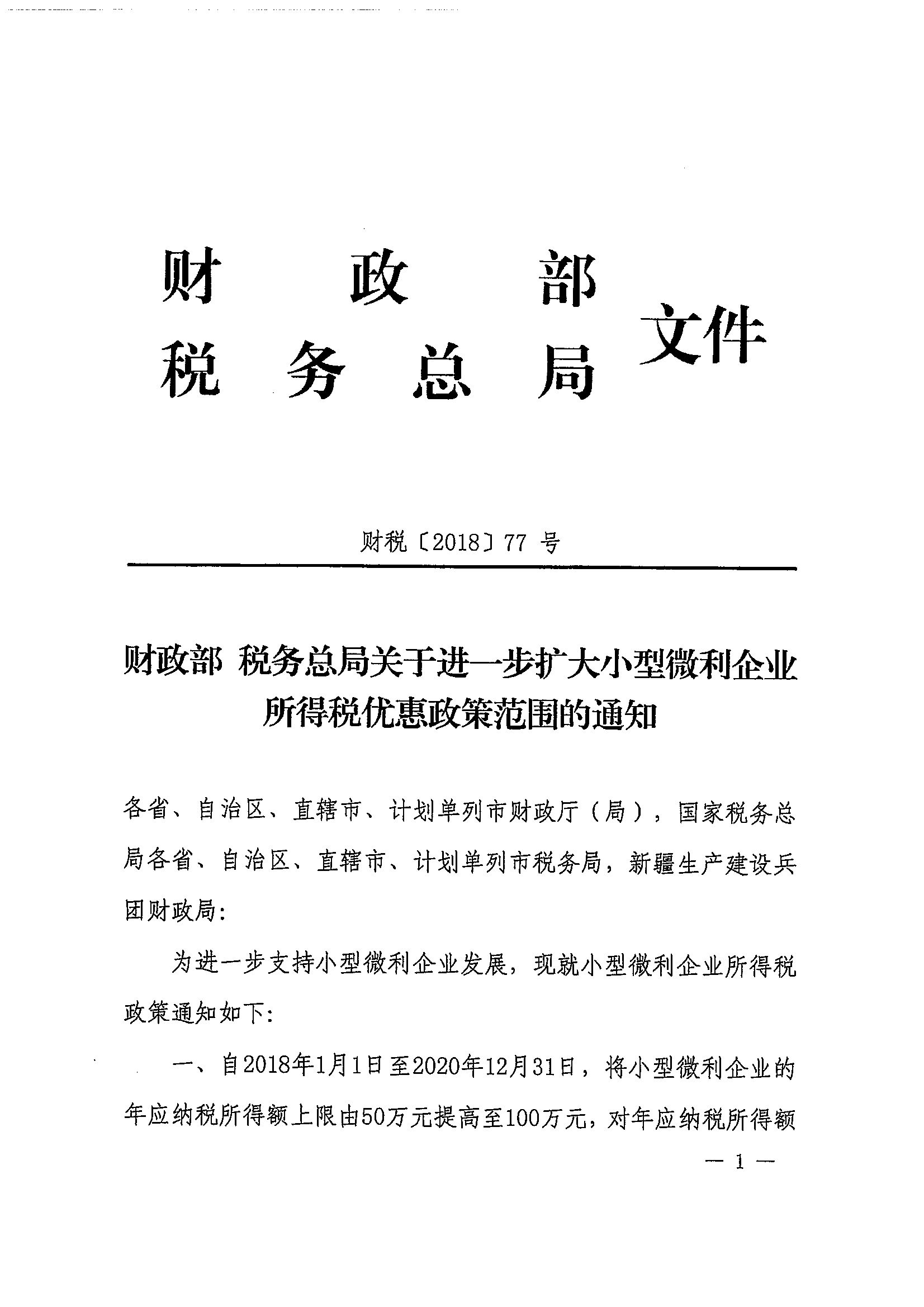 财政部 税务总局关于进一步扩大小型微利企业所得税优惠政策范围的通知
