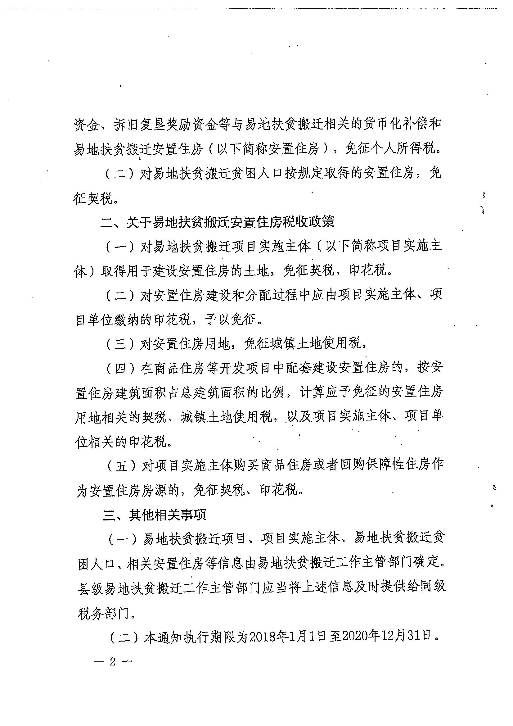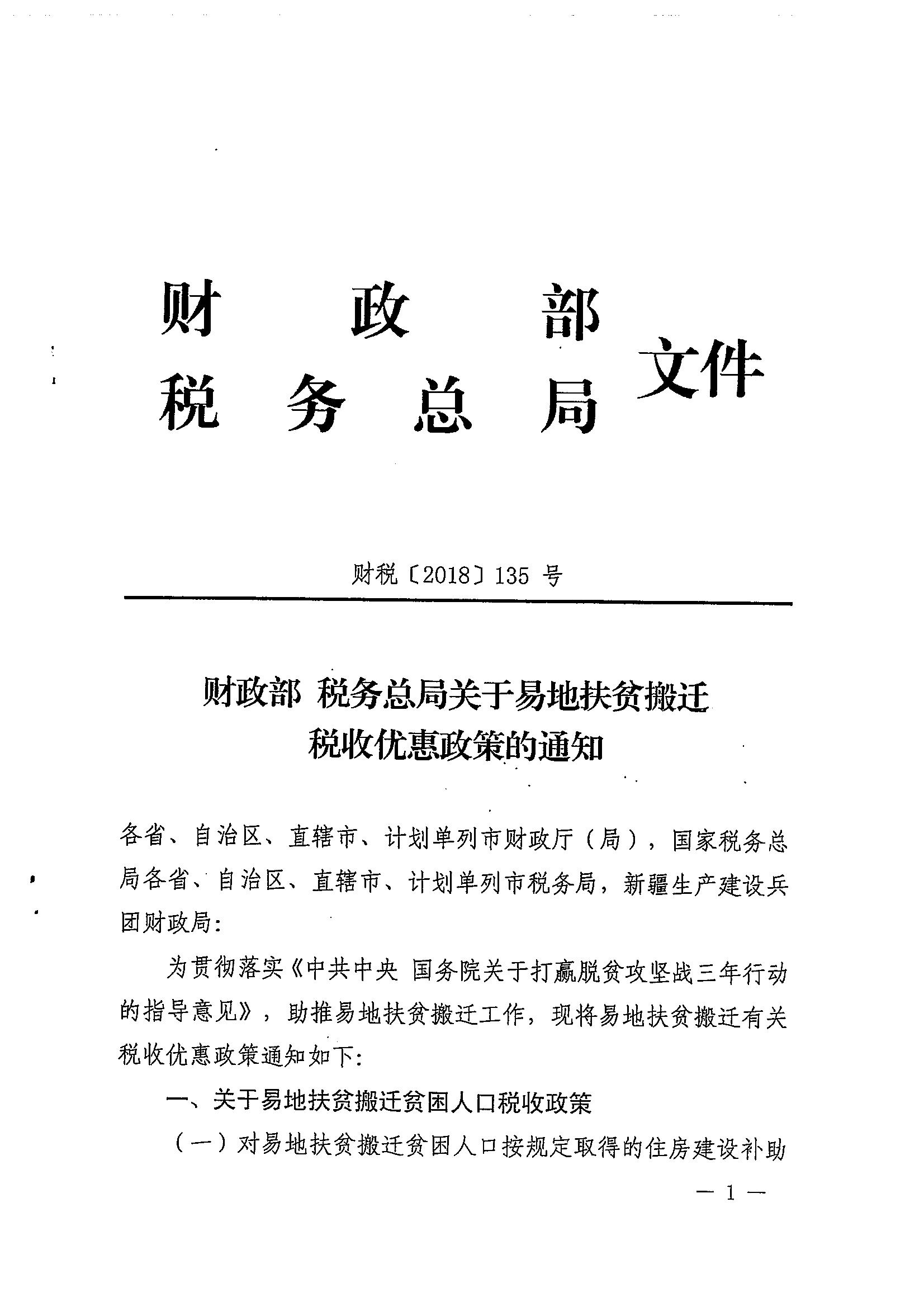财政部 税务总局关于易地扶贫搬迁税收优惠政策的通知