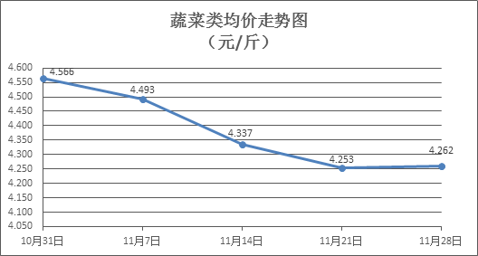 据本市21家农贸市场监测数据显示,本周(2022年11月22日至11月29日,下同)市场上各类“菜篮子”商品供应充足,所监测的7大类“菜篮子”商品价格5涨2跌。其中:粮食类、肉类商品价格稳中略降,食用油类、禽蛋类、水果类商品价格略有上涨,蔬菜类、水产类商品价格窄幅盘整。