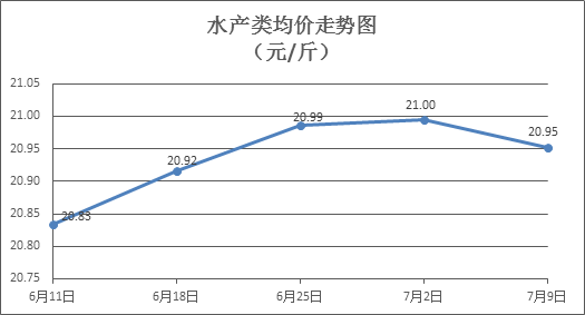 水产类商品价格小幅波动。上周所监测的10种水产商品价格波动情况为5涨4跌1平,综合均价为20.95元/斤,环比下降0. 20%。其中:草鱼、鲢鱼、鳙鱼、罗非鱼、基围虾零售均价分别为每斤11.11元、10.05元、10.19元、8.42元、38.58元,环比分别上涨0.09%、下降0.50%、上涨0.10%、下降1.41%、下降1.38%。