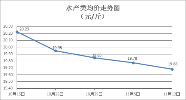 水产类商品价格窄幅盘整。上周所监测的10种水产商品价格波动情况为5涨4跌1平,综合均价为19.68元/斤,环比下降0.47%。其中:草鱼、鲢鱼、鲫鱼、罗非鱼、基围虾零售均价分别为每斤10.98元、9.47元、14.01元、8.47元、32.21元,环比分别上涨0.37%、下降0.63%、上涨0.07%、上涨0.36%、下降0.65%。