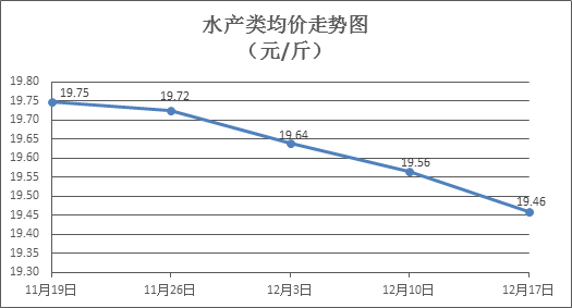 水产类商品价格略有下降。上周所监测的10种水产商品价格波动情况为2涨6跌2平,综合均价为19.46元/斤,环比下降0.53%。其中:草鱼、鲢鱼、鲫鱼、罗非鱼、基围虾零售均价分别为每斤10.96元、9.03元、13.89元、8.45元、32.28元,环比分别上涨0.09%、下降1.53%、上涨0.36%、持平、下降0.22%。