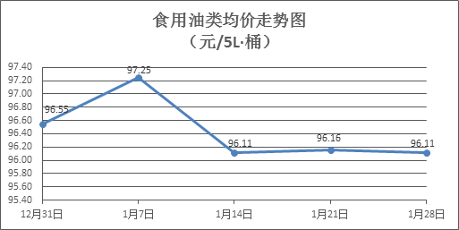 食用油类商品价格微幅波动。上周所监测的9种食用油(5L装)商品价格波动情况为3涨2跌4平,综合零售均价为96.11元/桶,环比下降0.05%。其中:鲁花花生油、玉米油零售均价分别为每桶154.64元、75.65元,环比分别下降0.39%、上涨0.27%。