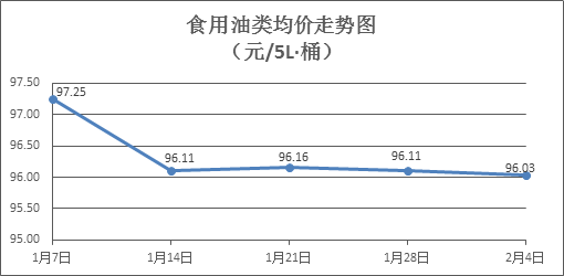 食用油类商品价格微幅波动。上周所监测的9种食用油(5L装)商品价格波动情况为5涨4跌,综合零售均价为96.03元/桶,环比下降0.08%。其中:鲁花花生油、玉米油零售均价分别为每桶154.04元、75.81元,环比分别下降0.39%、上涨0.21%。