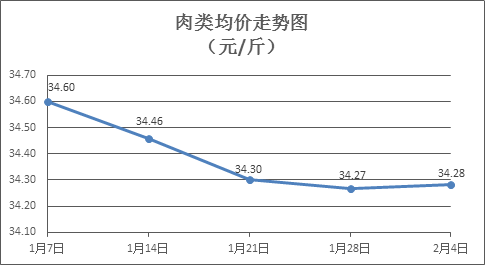 肉类商品价格窄幅盘升。上周所监测的8种肉类商品价格波动情况为6涨2跌,综合零售均价34.28元/斤,环比上涨0.05%。其中:排骨、精瘦肉、牛肉、带骨羊肉零售均价分别为每斤29.30元、18.22元、53.59元、44.62元,环比分别上涨0.14%、上涨0.77%、上涨0.02%、上涨0.29%。