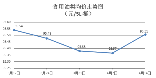 食用油类价格总体略涨。所监测的9种食用油(5L装)商品价格波动情况为5涨3跌1平,综合零售均价为每桶95.51元,环比上涨0.15%。其中:鲁花花生油、金龙油调和油零售均价分别为每桶154.07元、71.59元,环比分别上涨1.10%、上涨0.32%。