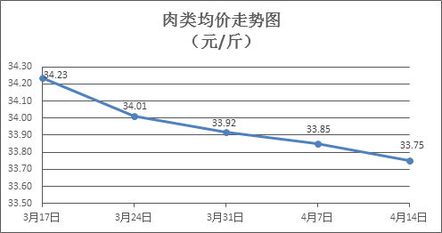 肉类商品价格微幅下降。所监测的8种肉类商品价格波动情况为7跌1平,综合零售均价为每斤33.75元,环比下降0.29%。其中:排骨、精瘦肉、有皮上肉、牛肉、带骨羊肉零售均价分别为每斤29.22元、18.20元、14.44元、52.39元、43.86元,环比分别下降0.10%、持平、下降0.69%、下降0.44%、下降0.39%。