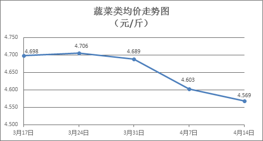 据本市21家农贸市场监测数据显示,上周(4月8日至4月14日,下同)市场上各类“菜篮子”商品供应充足,所监测的7大类“菜篮子”商品价格2涨5跌。其中:粮食类商品价格基本平稳,肉禽蛋类、蔬菜类商品价格总体略降,食用油类、水果类、水产类商品价格窄幅盘整。进入消费淡季,肉禽蛋鱼价格总体略降,预计受五一节前备货需求增加影响,肉禽价格有所回稳。