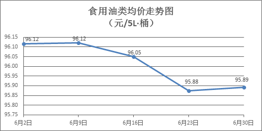 食用油类商品价格微幅上涨。所监测的9种食用油(5L装)商品价格波动情况为6涨2跌1平,综合零售均价为每桶95.89元,环比上涨0.02%。其中:鲁花花生油、玉米油零售均价分别为每桶154.46元、76.87元,环比分别上涨0.21%、上涨0.29%。