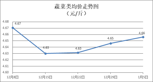 据本市21家农贸市场监测数据显示,上周(12月30日至1月5日)市场上各类“菜篮子”商品供应充足,所监测的7大类“菜篮子”商品价格总体表现为4涨3跌。其中:粮油类商品价格稳中略涨,肉禽蛋类商品价格略有回落,蔬果类、水产类商品价格窄幅盘整。元旦过后,肉禽蛋类价格走势偏弱。天气晴好,后市供应充足,预计各类肉菜价格窄幅盘整,波动幅度不会太大。
