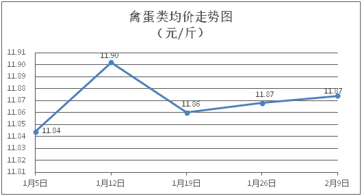 禽蛋类商品价格微幅上涨。所监测的5种禽蛋类商品价格波动情况为3涨1跌1平,综合零售均价为每斤11.87元,环比上涨0.05%。其中:白条鸡、白条鸭零售均价分别为每斤20.74元、15.30元,环比分别上涨0.05%、上涨0.53%;鸡蛋、鸭蛋零售均价分别为每斤6.62元、7.57元,环比分别上涨0.46%、下降1.17%。