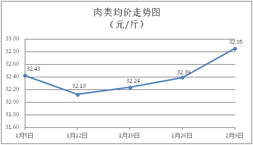 据本市21家农贸市场监测数据显示,上周(2月3日至2月9日)市场上各类“菜篮子”商品供应充足,与节前一周相比,所监测的7大类“菜篮子”商品价格总体表现为6涨1平。其中:粮油类商品价格基本平稳,肉禽蛋类、蔬果类、水产类商品价格总体有所上涨。