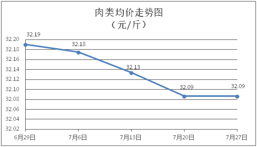 肉类商品价格微幅振荡。所监测的8种肉类商品价格波动情况为4涨2跌2平,综合零售均价为每斤32.09元,环比持平。其中:排骨、精瘦肉、牛肉、带骨羊肉零售均价分别为每斤30.15元、18.91元、46.50元、42.09元,环比分别下降0.33%、上涨0.16%、下降0.02%、上涨0.02%。