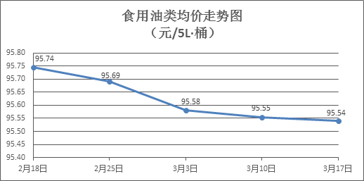 食用油类商品价格微幅盘整。上周所监测的9种食用油(5L装)商品价格波动情况为4涨4跌1平,综合零售均价为95.54元/桶,环比下降0.01%。其中:鲁花花生油、玉米油零售均价分别为每桶152.57元、75.97元,环比分别上涨0.02%、下降0.03%。