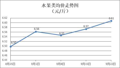 水果类商品价格总体略涨。所监测的6种水果商品价格波动情况为5涨1跌,综合零售均价为每斤6.61元,环比上涨0.53%。其中橙子、苹果、香蕉零售均价分别为每斤6.16元、7.53元、3.32元,环比分别上涨0.82%、上涨0.40%、下降1.48%。