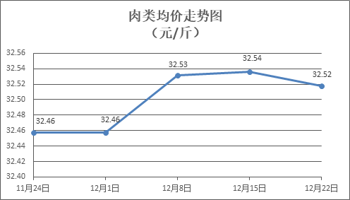 肉类商品价格窄幅盘降。所监测的8种肉类商品价格波动情况为2涨4跌2平,综合零售均价为每斤32.52元,环比下降0.06%。其中:排骨、精瘦肉、有皮上肉、牛肉、带骨羊肉零售均价分别为每斤31.76元、20.00元、16.19元、45.68元、41.78元,环比分别下降0.13%、下降0.05%、上涨0.56%、持平、下降0.88%。