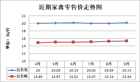 白条鸡、白条鸭零售均价分别为每斤20.14元、15.34元,环比分别上涨0.50%、上涨0.66%,同比分别上涨2.55%、下降2.79%;鸡蛋、咸鸭蛋零售均价分别为每斤6.52元、9.05元,环比分别上涨0.15%、上涨0.44%,同比分别下降5.23%、上涨2.14%。