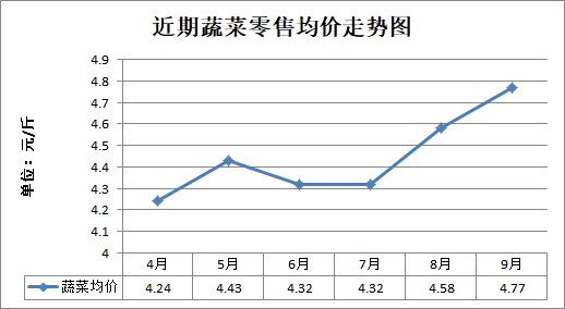 9月份,开云电竞官方网站价格监测中心对全市21家农贸市场、7家大型超市、1家农产品批发市场、5家生猪生产经营单位的主要农副商品实施了定期价格监测。据监测数据显示,我市主要农副商品价格总体略涨,波动幅度处于合理范围内。其中:粮食类、食用油类、肉类商品价格环比分别下降0.88%、上涨0.05%、下降0.24%;家禽类、蛋类商品价格环比分别上涨0.57%、上涨0.39%;蔬菜类、水果类、水产类商品价格环比分别上涨4.15%、上涨1.23%、下降0.05%。
