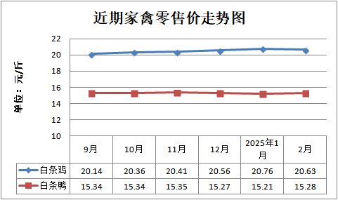 白条鸡、白条鸭零售均价分别为每斤20.63元、15.28元,环比分别下降0.63%、上涨0.46%,同比分别上涨1.28%、持平;鸡蛋、鸭蛋零售均价分别为每斤6.61元、7.65元,环比分别上涨0.46%、下降0.13%,同比分别下降0.90%、下降0.39%。