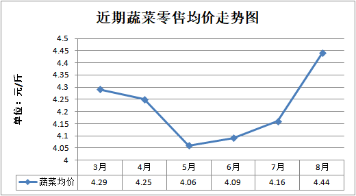 8月份,台风天气持续,蔬菜生长运输受到影响,供应量有所减少,价格总体整体上涨6.73%,仅耐储存的红萝卜、白萝卜、莲藕价格稳中略降,其余27种蔬菜类商品价格大多上涨5%以上。开学季备货需求带动下,鲜排骨、精瘦肉、鸡肉零售价格分别微涨0.60%、0.05%、0.44%。产能过剩、消费疲软、高温高湿天气致保质期缩短等因素下,鸡蛋价格下降2.45%,咸鸭蛋价格下降0.55%。由于饲料成本上涨,导致淡水鱼价格随之上涨。