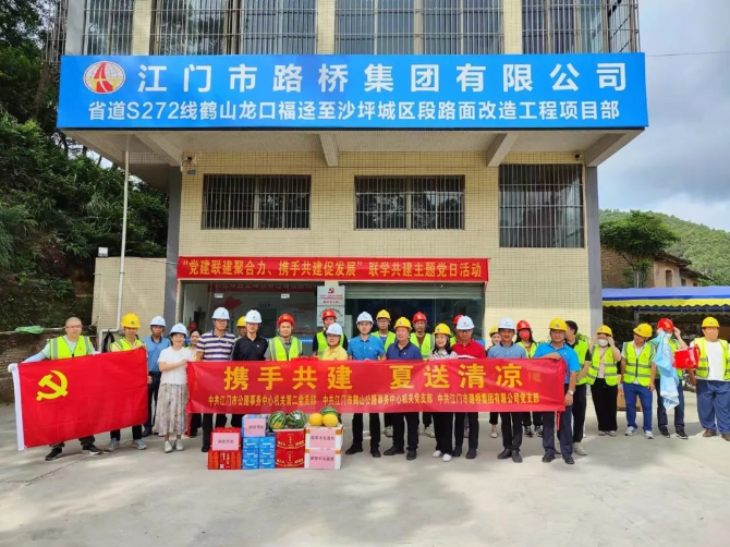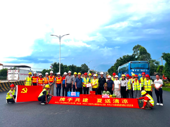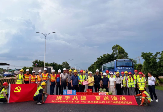 7月1日,在中国共产党成立102周年之际,中共开云电竞官方网站公路事务中心机关第二党支部、中共开云电竞官方网站鹤山公路事务中心机关党支部、中共开云电竞官方网站恩平公路事务中心支部、中共开云电竞官方网站路桥集团有限公司党支部以“携手共建 夏送清凉”为主题开展七一党建慰问活动,前往省道S272线鹤山龙口福迳至沙坪城区段路面改造工程项目经理部、国道G325线鹤山白米田至东溪段路面预防养护及功能性修复养护工程项目施工现场、国道G325线恩平圣堂至大槐段路面改造工程项目经理部、国道G325线恩平君堂至盘龙段路面预防养护及功能性修复养护工程项目施工现场进行慰问,参加了项目临时党支部庆七一主题党日活动,为奋战在工地一线的员工送去防暑降温物资。开云电竞官方网站公路事务中心党组书记朱运梅,党组成员、副主任林启宁,开云电竞官方网站路桥集团有限公司董事长冯志明、党支部书记尹燕芳参加活动。
