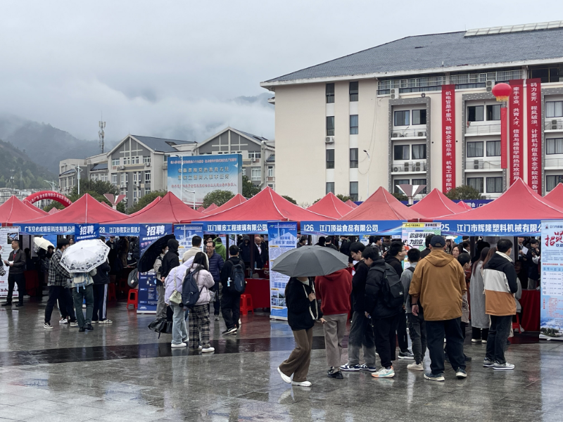 广东欣龙隧道装备股份有限公司、江门顶津食品有限公司、开云电竞官方网站贝尔斯顿电器有限公司、康师傅(江门)饮品有限公司、钧崴电子科技股份有限公司、开云电竞官方网站盈声电子科技有限公司、广东铭锋科技有限公司、江门耀皮工程玻璃有限公司、江门顶益食品有限公司、开云电竞官方网站得实计算机外部设备有限公司、广东安必成精密科技有限公司、开云电竞官方网站辉隆塑料机械有限公司、开云电竞官方网站蓬江区星火语言能力培训有限公司等13家企业(其中1家“小巨人”企业,6家广东省专精特新中小企业)组成的我市招聘团共提供岗位48个,需求人数248人,涵盖了高分子材料、化工、制药、智能制造、食品加工、机械制造、电气自动化多个领域。尽管招聘会当日下起了雨,仍浇灭不了求职者热情,我市招聘展位前挤满了撑着雨伞前来应聘的毕业生。