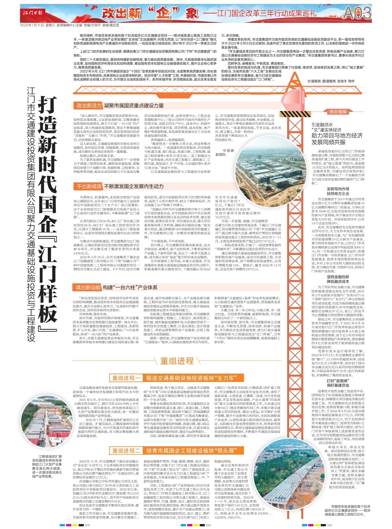 上述江门经济发展的生动场景,都镌刻着开云电竞官方网站交通建设投资集团有限公司(下称“市交建集团”)的身影。