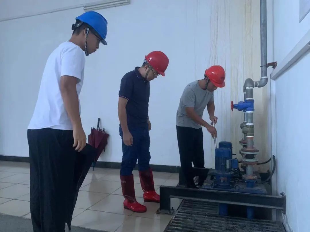 ▲对西江水厂各生产经营区域防汛重点部位、排涝设施设置等防汛安全措施落实情况进行检查,确保供水设施设备安全平稳运行。
