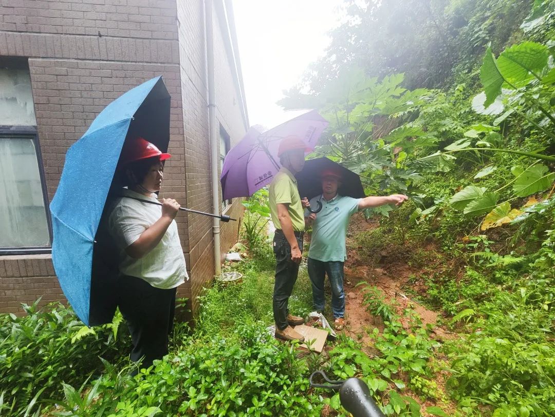 ▲对公司房屋、挡土墙、低洼易涝区域等进行检查,采取有效措施排险加固。