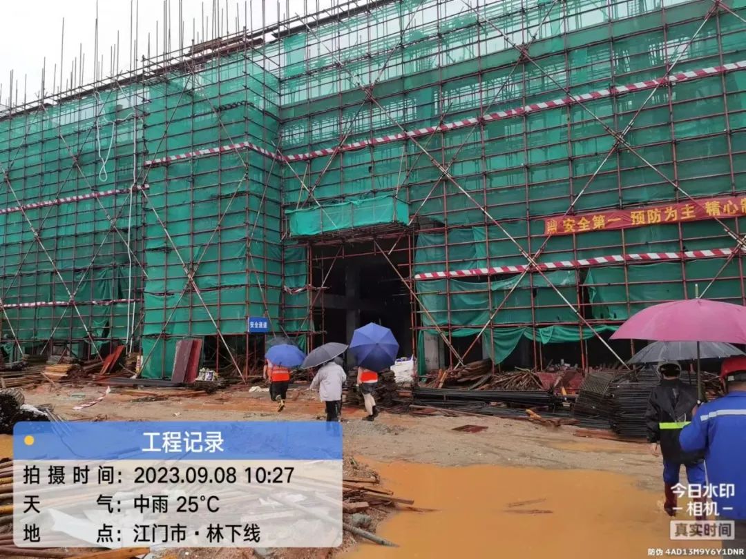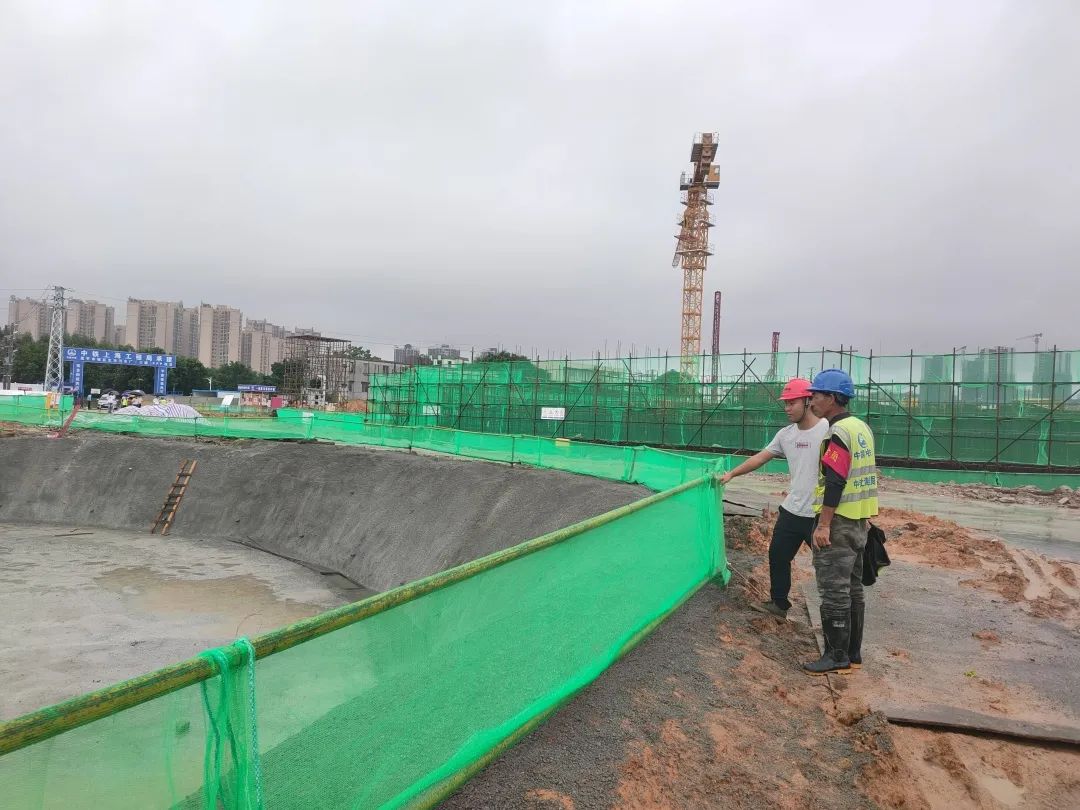 ▲对恩平(三期)PPP项目建设工地的安全防护及围蔽、沉淀池积水情况进行检查,及时使用水泵抽水,降低暴雨对施工工地的影响。