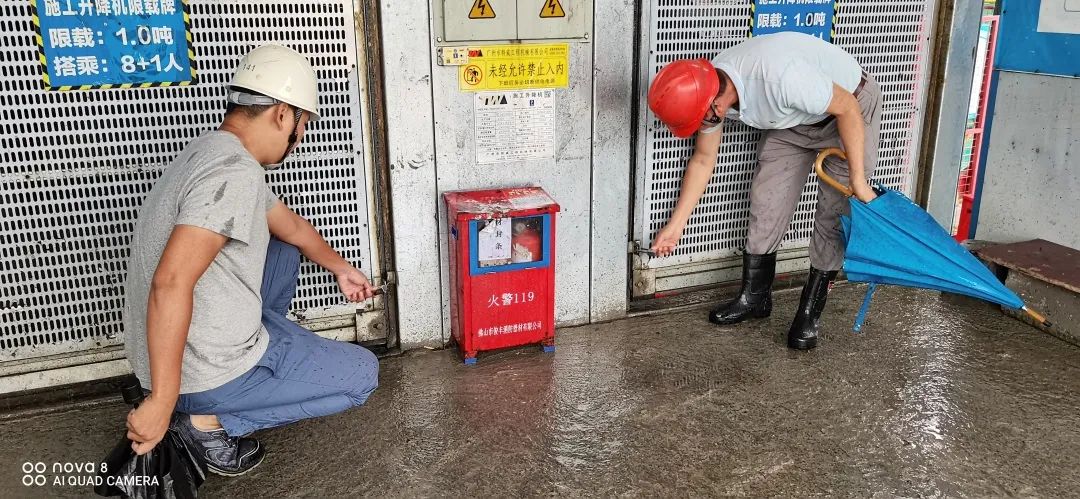 ▲做好公用大厦项目施工电梯等重点部位的排险加固工作。