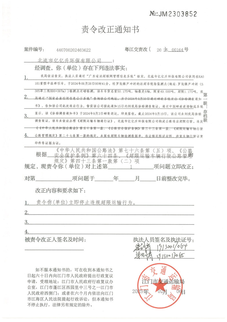 如不服处罚决定,可以自《行政处罚决定书》和《责令改正通知书》送达之日起60日内向开云电竞官方网站人民政府申请行政复议,或者在6个月内依法向开云电竞官方网站江海区人民法院提起行政诉讼,但行政处罚决定不停止执行,法律另有规定的除外。逾期不申请行政复议、不提起行政诉讼又不履行的,本机关将依法申请人民法院强制执行或者依照有关规定强制执行。