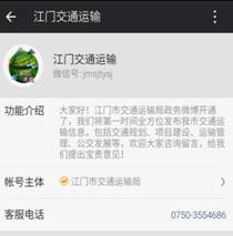 (四)畅通公开渠道。2015年我局新浪政务微博(http://weibo.com/jmsjtysj)和腾讯政务微博(http://t.qq.com/jmsjtysj2013)推送了各种多元化的动态信息和行业资信,通过江门交通运输信息简报、江门日报、江门电视台等方式畅通公开渠道,拓展交通运输政务信息的影响力。同时通过部门网站和政府热线12345为群众提供政策咨询、受理交通诉求和投诉服务,积极解决群众所关心的热点问题。