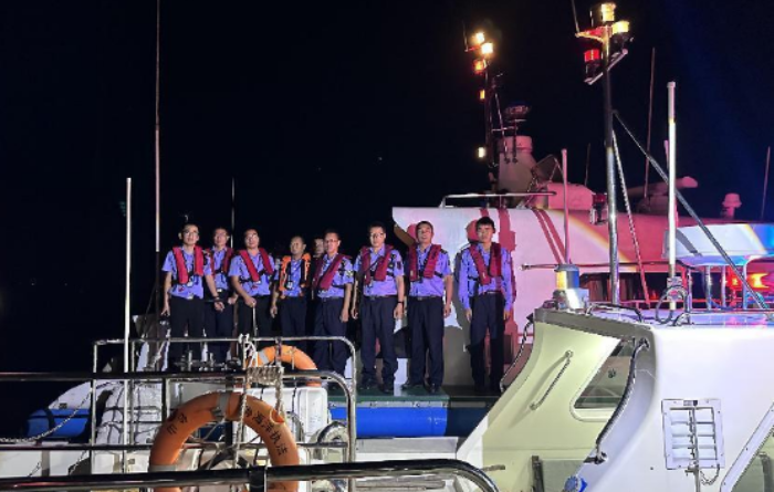 9月25日晚,省海洋综合执法总队直属二支队联合江门支队在江珠交界水域开展打击电鱼执法专项行动,对崖门口、黄茅海大桥、大襟岛一带海域进行执法巡航。