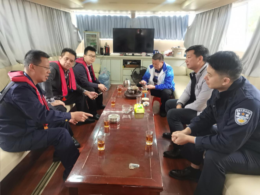 12月5日,市海洋综合执法支队副支队长钟树年陪同省总队领导到新会区崖门渔港开展渔船安全检查工作。