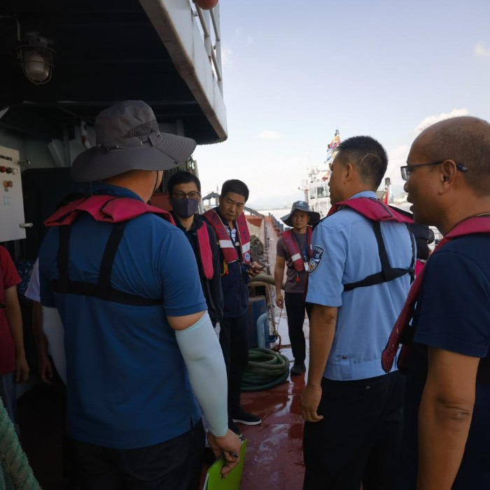 6月23日,市海洋综合执法支队到台山市大江镇开展渔船检验工作。