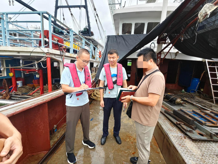 8月6日,市海洋综合执法支队渔船渔港监督科到台山市广海镇开展渔船安全检查工作。