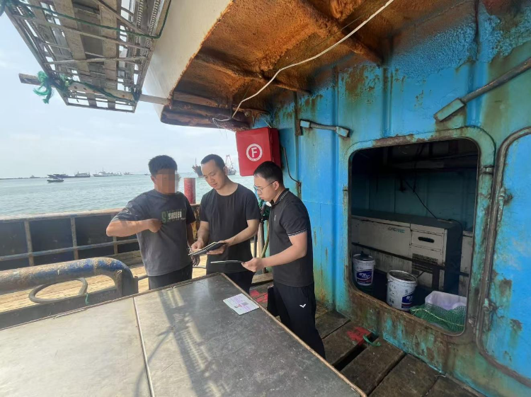3月24日,市海洋综合执法支队渔船渔港监督科到阳江市闸坡渔港开展跨海区作业渔船检验工作。
