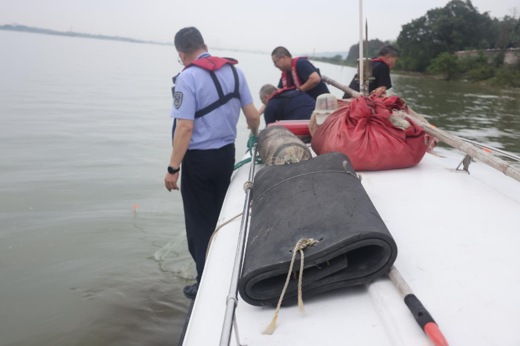 3月24日,市海洋综合执法支队渔业执法科(机动大队)前往九江大桥附近水域,蓬江区荷塘、潮连,江海区外海等地开展禁渔期执法巡查,清理违规网具3张,约300米。