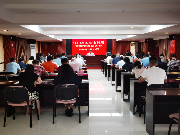 5月24日,市农业农村局召开党纪学习教育专题党课培训会,局党组书记、局长郑少强讲授党课,局机关和市海洋综合执法支队全体党员、直属各事业单位主要负责人、各党支部书记参加。