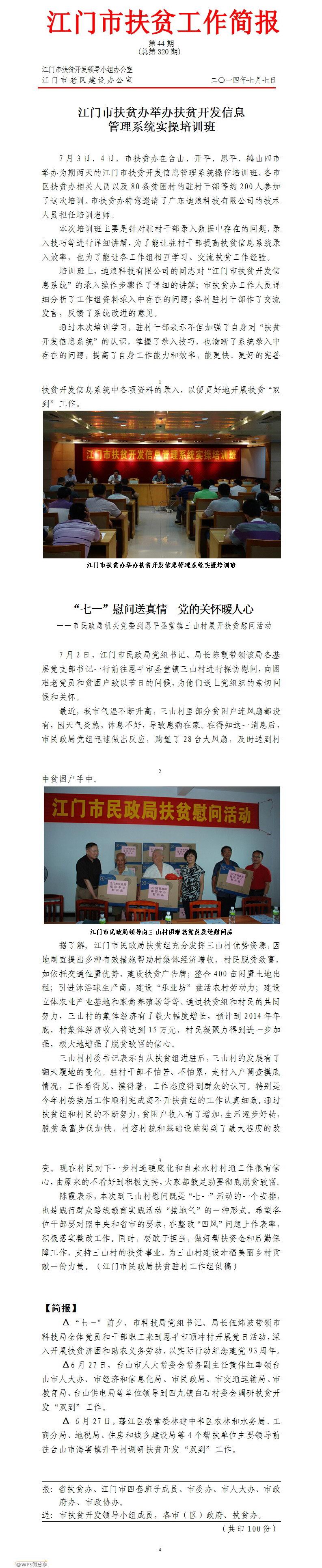 2014年开云电竞官方网站扶贫工作简报第44期(总第320期)