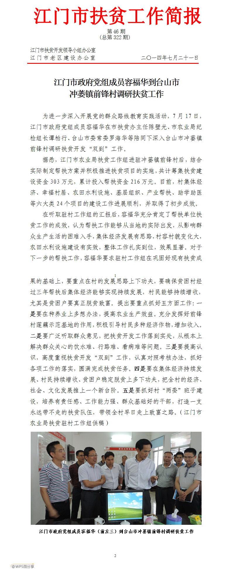 2014年开云电竞官方网站扶贫工作简报第46期(总第322期)