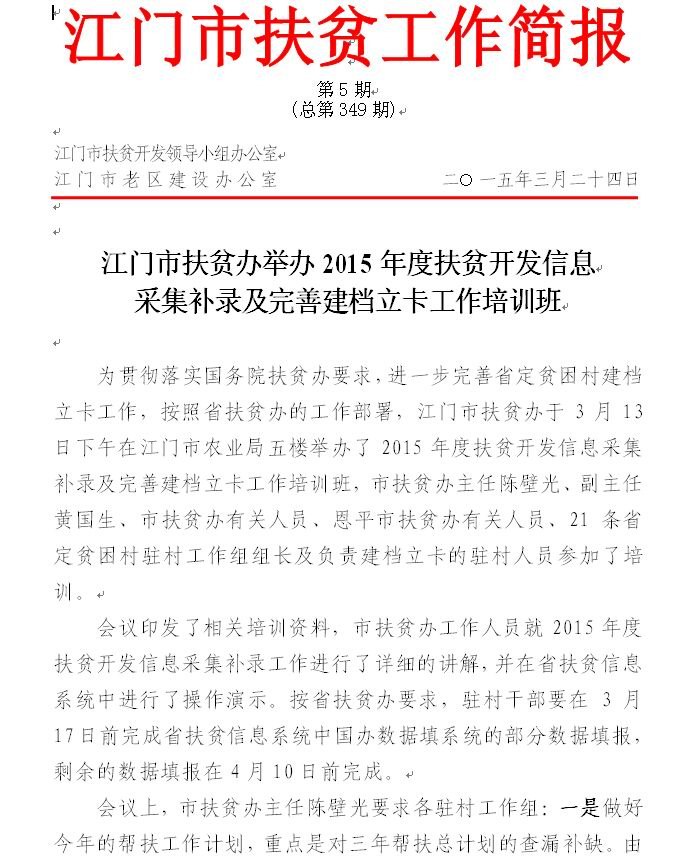 2015年开云电竞官方网站扶贫工作简报第5期(总第349期)