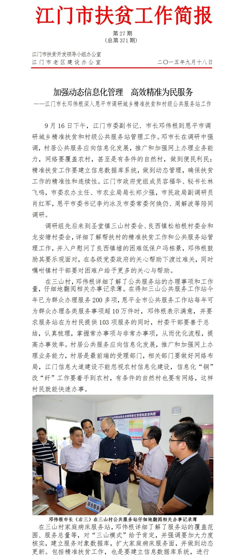 2015年开云电竞官方网站扶贫工作简报第27期(总第371期)