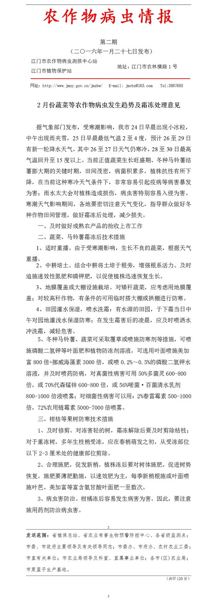 (2月份蔬菜等农作物病虫发生趋势及霜冻处理意见)