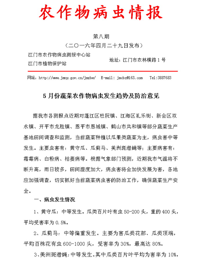 (5月份蔬菜农作物病虫发生趋势及防治意见)